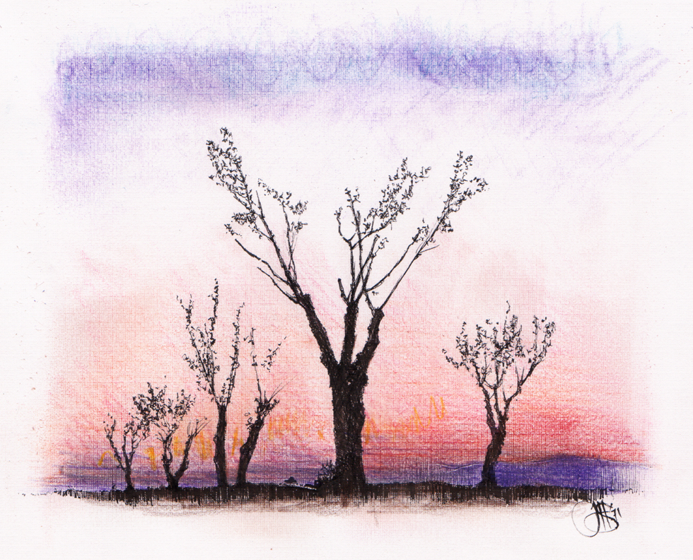 'galil sunrise,' 4"x5", ink & colored pencil, not for sale
